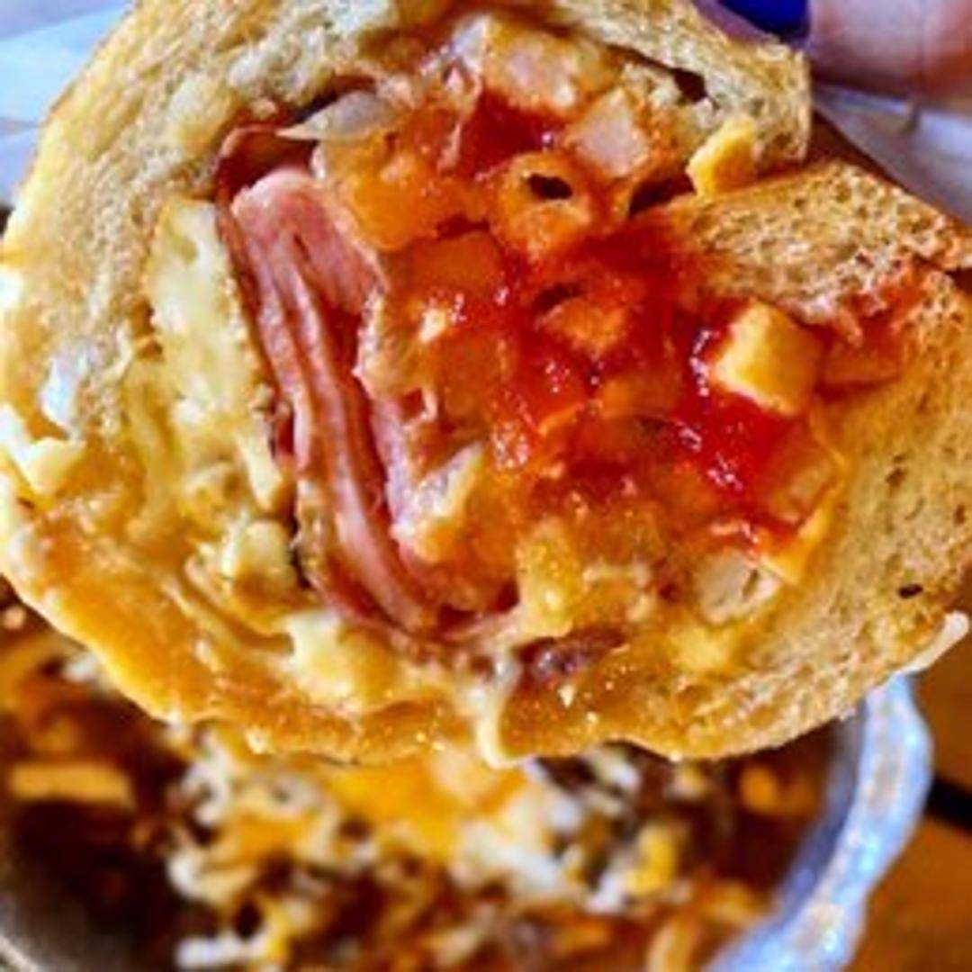 Fried chicken fingers, mozzarella sticks, bacon, french fries, onion rings, melted mozzarella, and honey mustard all on a garlic hero roll.