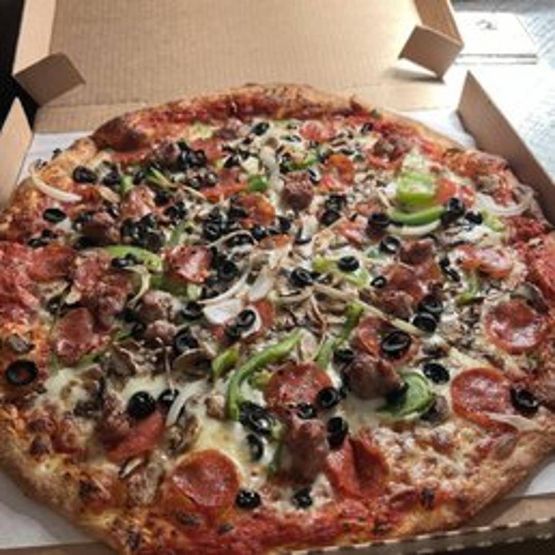 The ultimate pizza creation! Loaded with pepperoni, sausage, ground beef, mushrooms, onions, green peppers, black olives, and extra cheese.