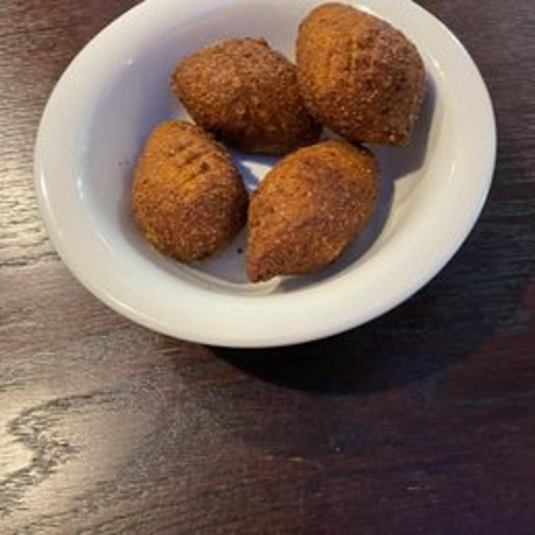 A flavorful vegetarian kibbeh made with pumpkin, bulgur wheat, finely ground nuts, and aromatic spices. Lightly fried or baked to a golden-brown perfection, offering a savory and slightly sweet taste.