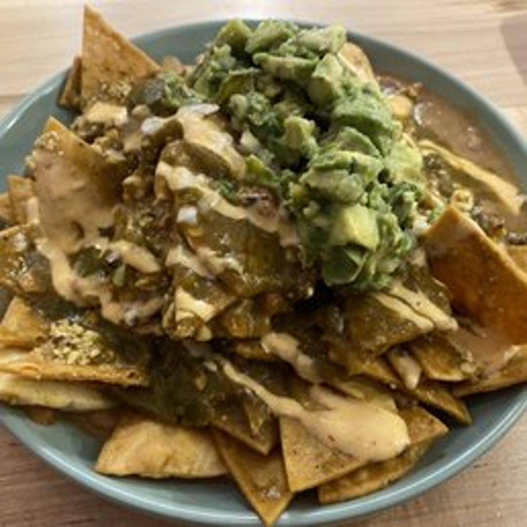 Crispy tortilla chips simmered in a zesty salsa, topped with your choice of protein, crumbled cheese, and a dollop of sour cream.
