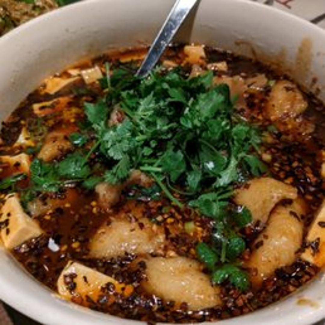 Fish fillet cooked with chili peppers, vegetables, and a spicy, savory sauce.