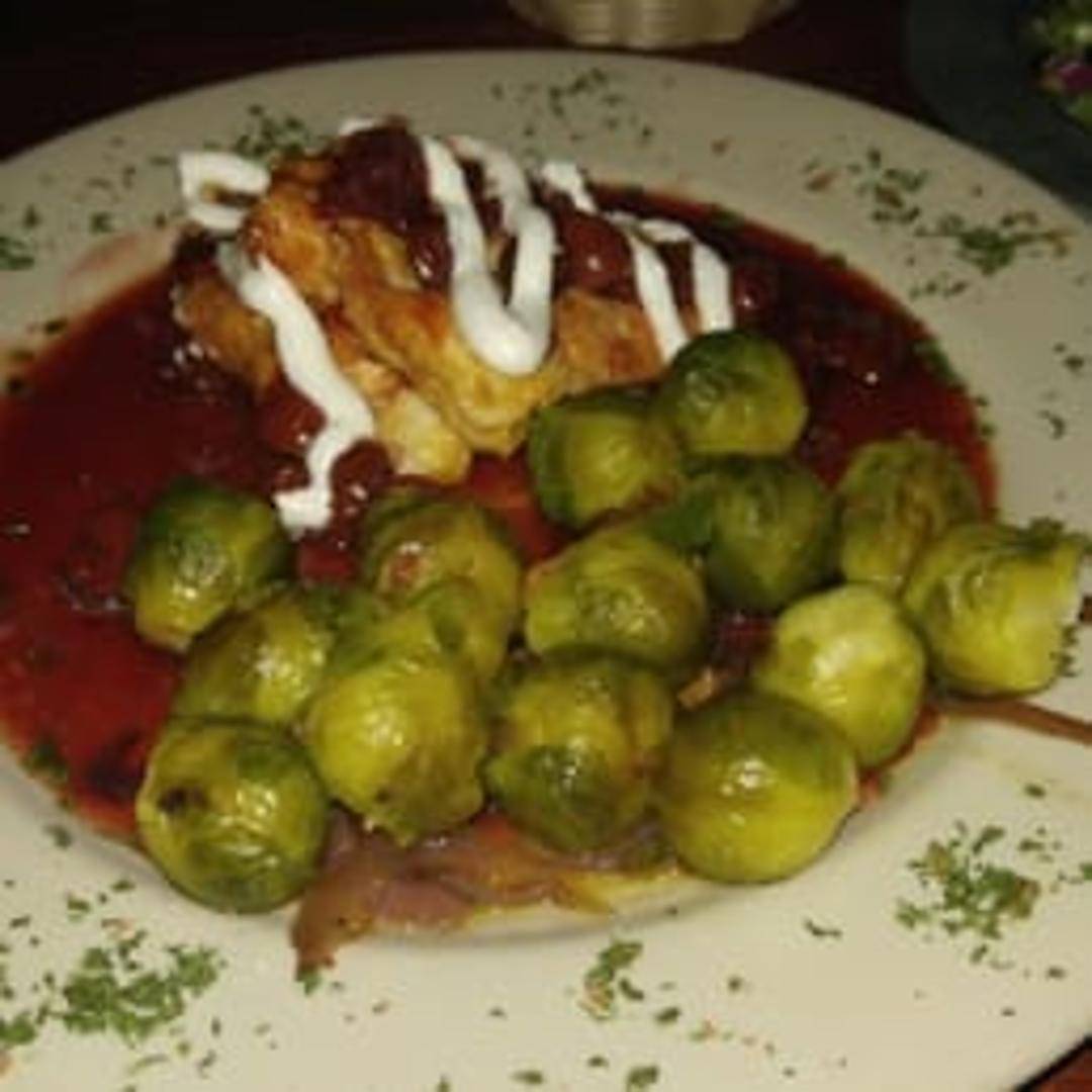 Grilled chicken breast topped with dried cherries, crumbled bleu cheese, and a cherry balsamic glaze. Served with your choice of two sides.