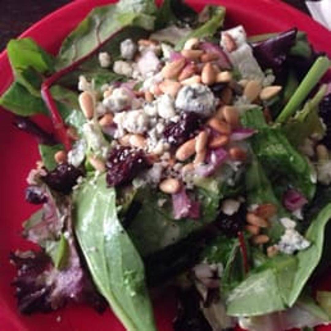 Mixed greens tossed with dried cherries, pecans, crumbled bleu cheese, and balsamic vinaigrette.