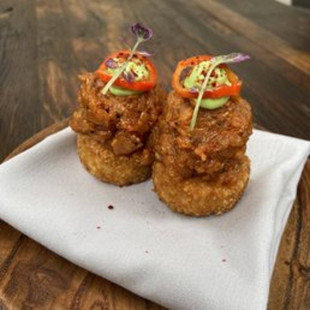 A captivating fusion dish, the Spicy Tuna Arancini presents golden-fried, crispy rice balls with an exciting twist. Each arancino boasts a delightful crunch on the exterior, giving way to a creamy, savory risotto interior generously infused with bold and zesty spicy tuna, creating an unforgettable explosion of flavor and texture.