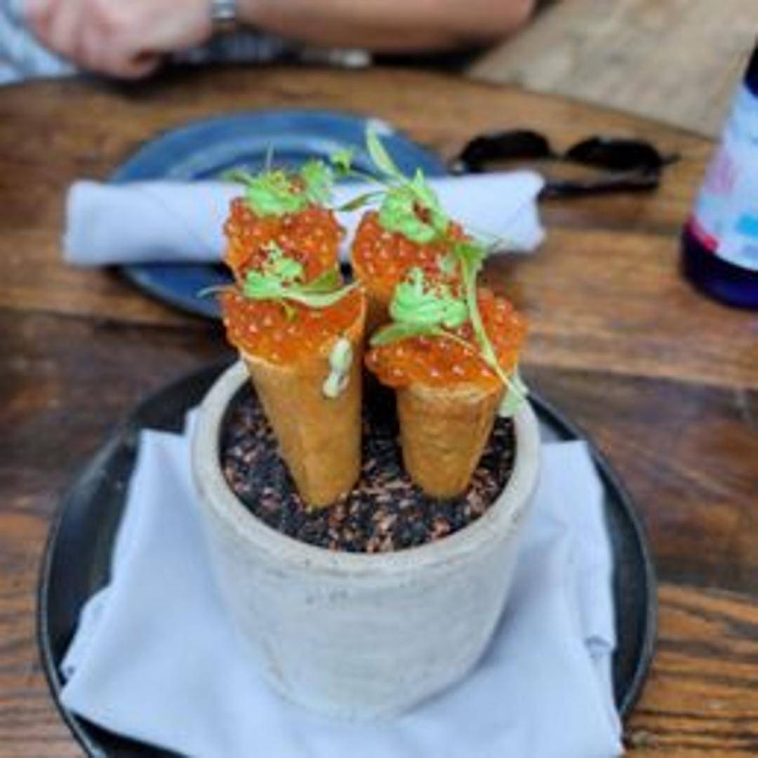 An exquisite appetizer presenting pristine, sushi-grade salmon, hand-diced and delicately seasoned with a harmonious blend of fresh shallots, capers, chives, and a zest of lemon. Served alongside creamy avocado purée, a drizzle of extra virgin olive oil, and crisp artisanal crostini or blinis, this dish offers a refreshing burst of oceanic flavor and a refined balance of textures.