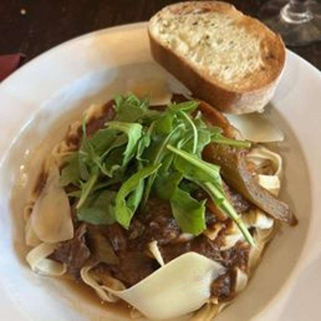 Tender, slow-braised beef ragu simmered in a flavorful blend of tomatoes, vegetables, and red wine. Served over your choice of pasta and garnished with fresh herbs and grated Parmesan cheese.