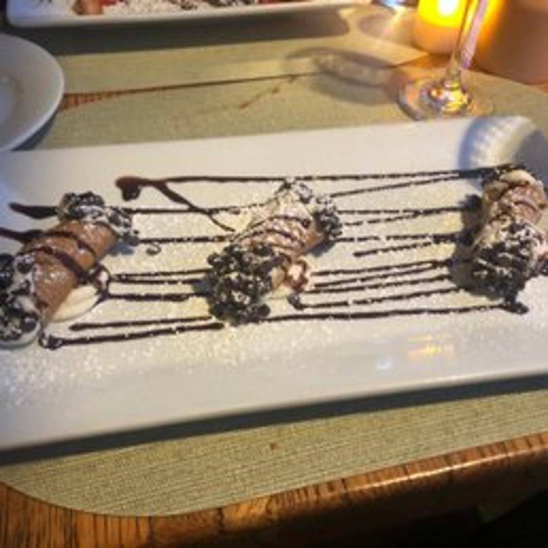 Crisp, tube-shaped pastry shell filled with a sweet, creamy ricotta filling. May contain chocolate chips, candied fruit, or pistachios. Lightly dusted with powdered sugar.
