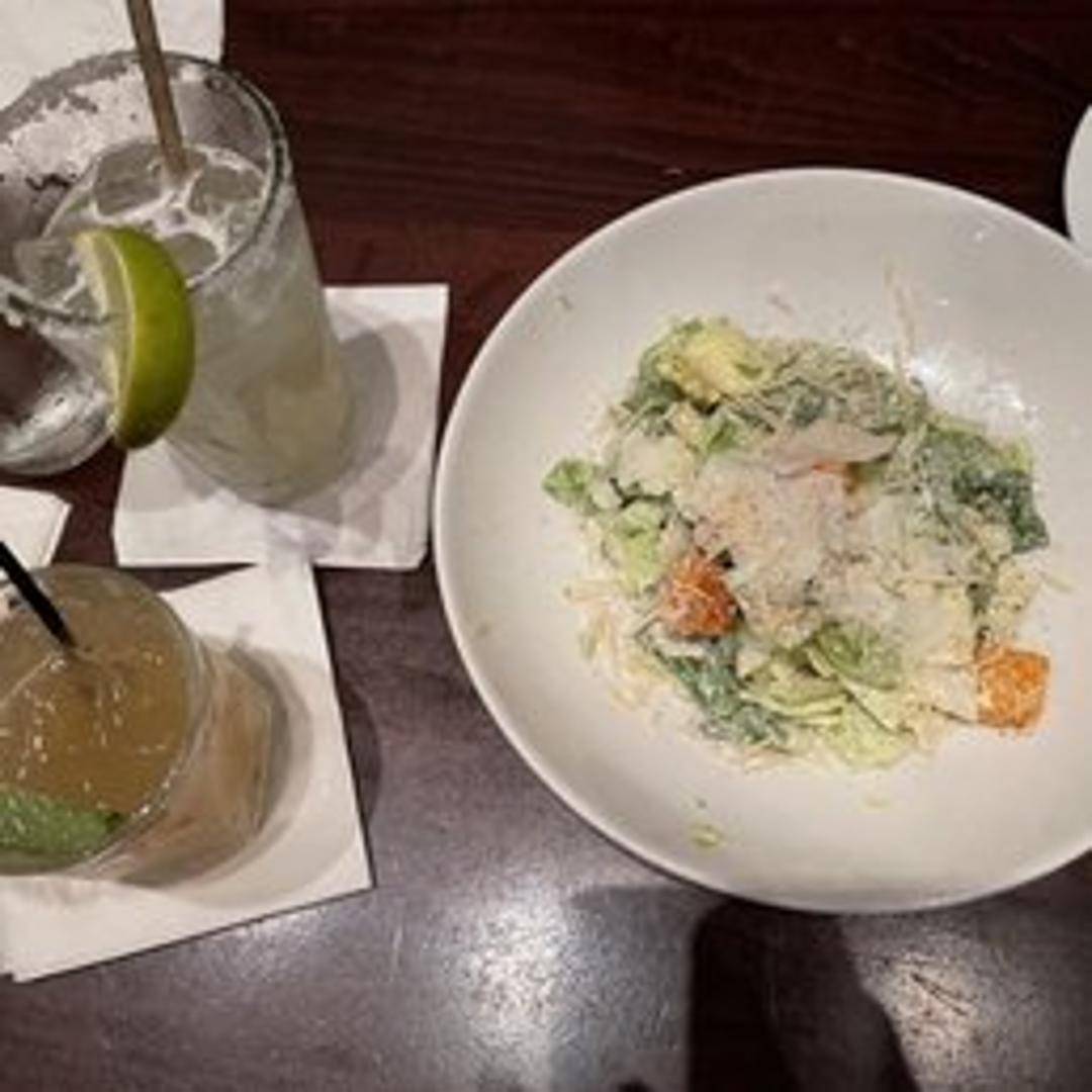 Crisp romaine lettuce tossed in a creamy Caesar dressing with garlic croutons and shaved Parmesan cheese. Available with grilled chicken, wood-grilled salmon, or shrimp.