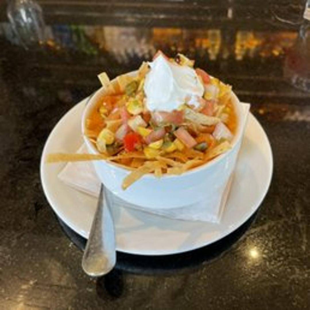 Warm your soul with our savory Chicken Tortilla Soup. A robust and flavorful broth, brimming with tender shredded chicken, sweet corn, black beans, and diced tomatoes. Finished with crispy tortilla strips, a dollop of sour cream, and a sprinkle of fresh cilantro, offering a delightful blend of textures and authentic Southwestern flavors.