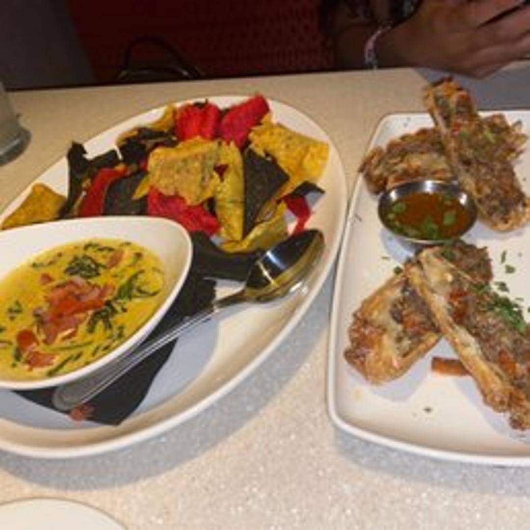 A creamy blend of lobster, spinach, and melted cheese, served warm with tortilla chips for dipping.