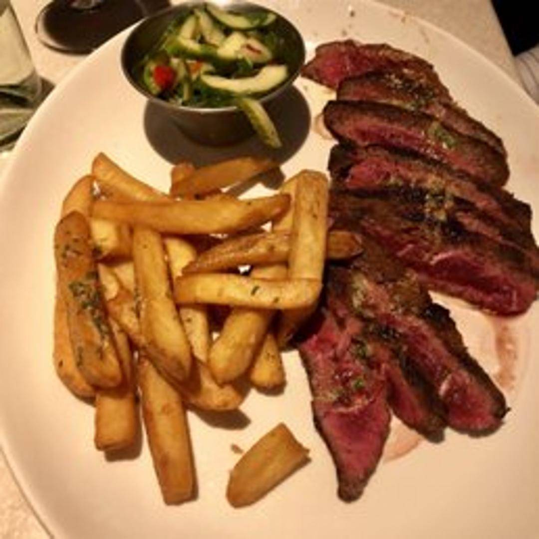 Wood-grilled sirloin steak served with crispy fries and garlic aioli.