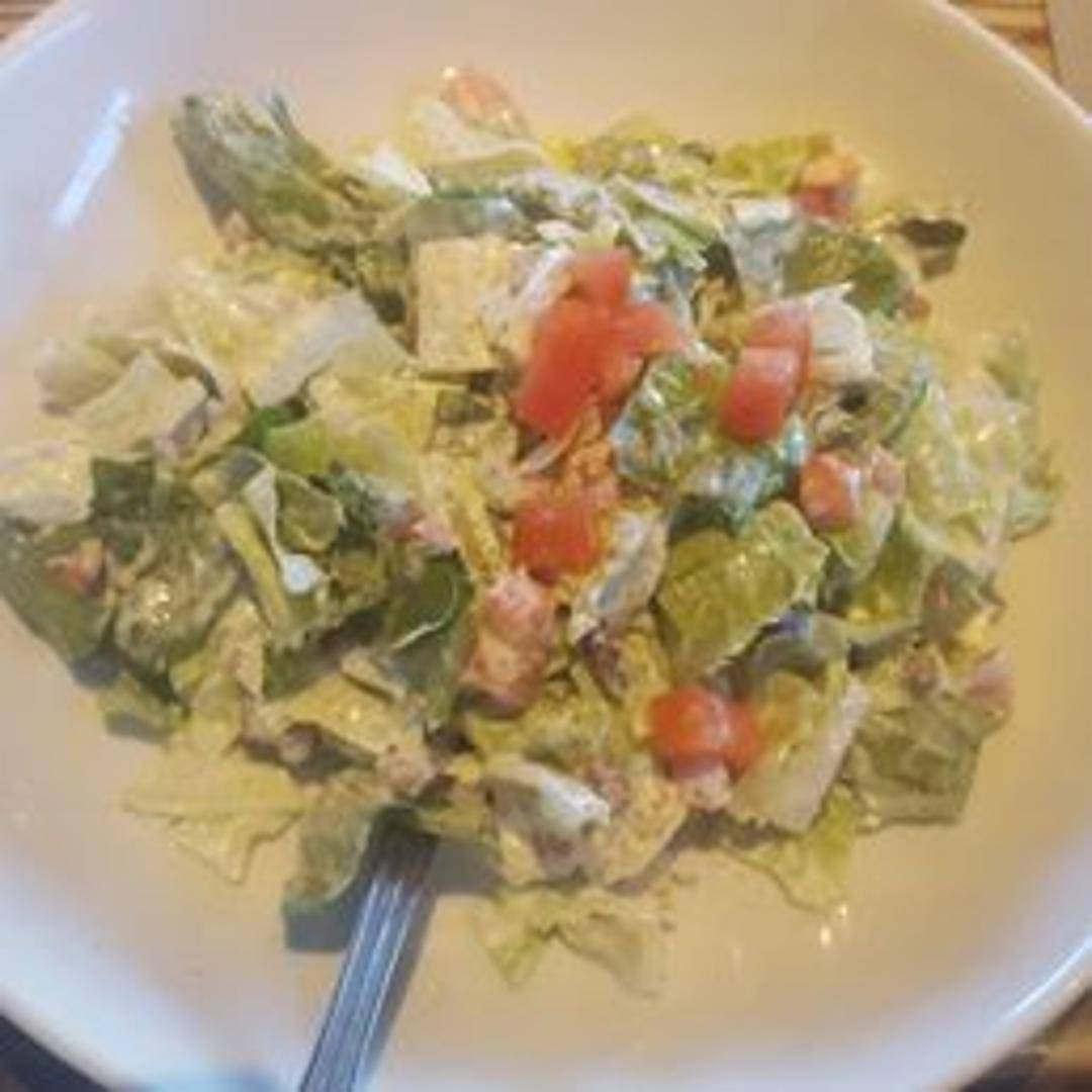 Crisp mixed greens tossed with smoked bacon, diced tomatoes, avocado, croutons, and a creamy dressing.