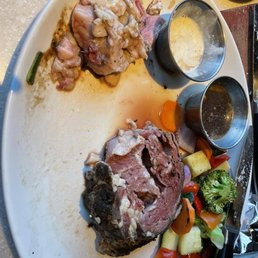 Slow-roasted prime rib, seasoned and cooked to perfection, served with au jus and horseradish cream. Available in select sizes.