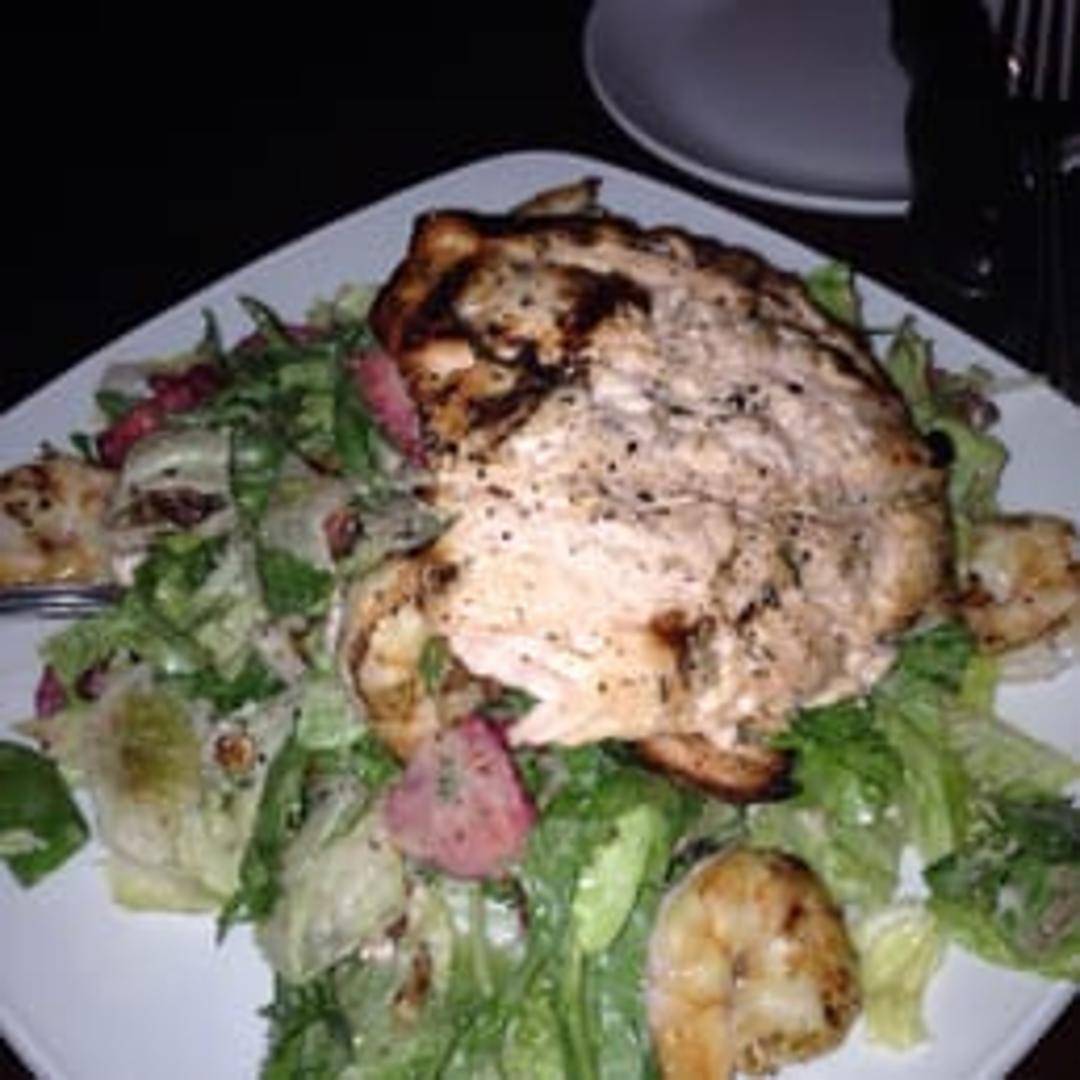 A vibrant and refreshing salad combining tender, wood-grilled shrimp with sweet, ripe strawberries, crisp mixed greens, and complementary toppings, all tossed in a light, refreshing dressing.