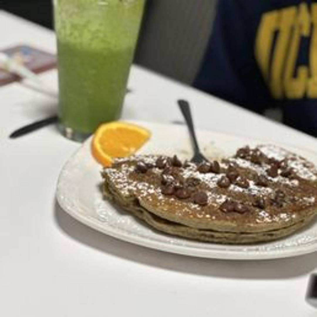 Sweet and decadent pancakes loaded with melted chocolate chips. Served with warm butter and maple syrup.