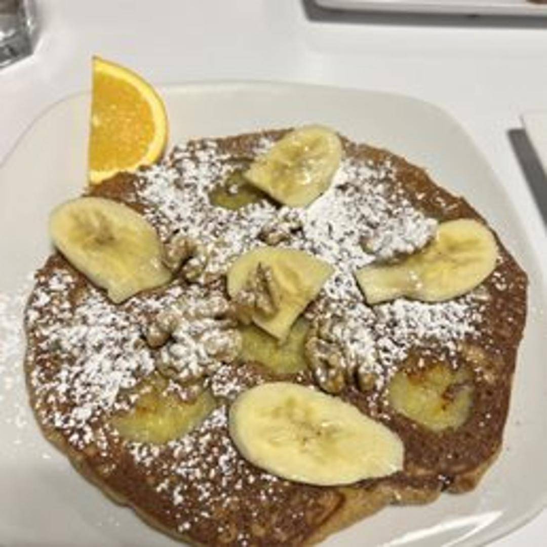 Fluffy pancakes infused with the sweet flavor of ripe bananas and the nutty crunch of toasted walnuts. Served with warm butter and maple syrup.