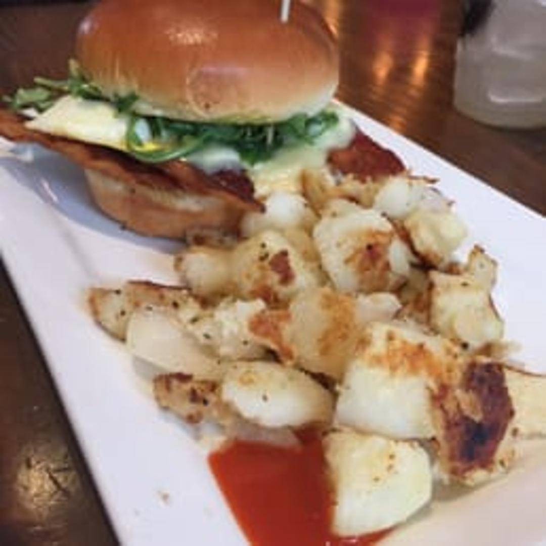 A hearty breakfast classic featuring fresh, cage-free eggs, crispy bacon or savory sausage, and melted cheese, all served on a grilled brioche bun. Accompanied by a choice of seasoned potatoes or a fresh greens salad, this sandwich offers a perfect blend of savory flavors to start your day.