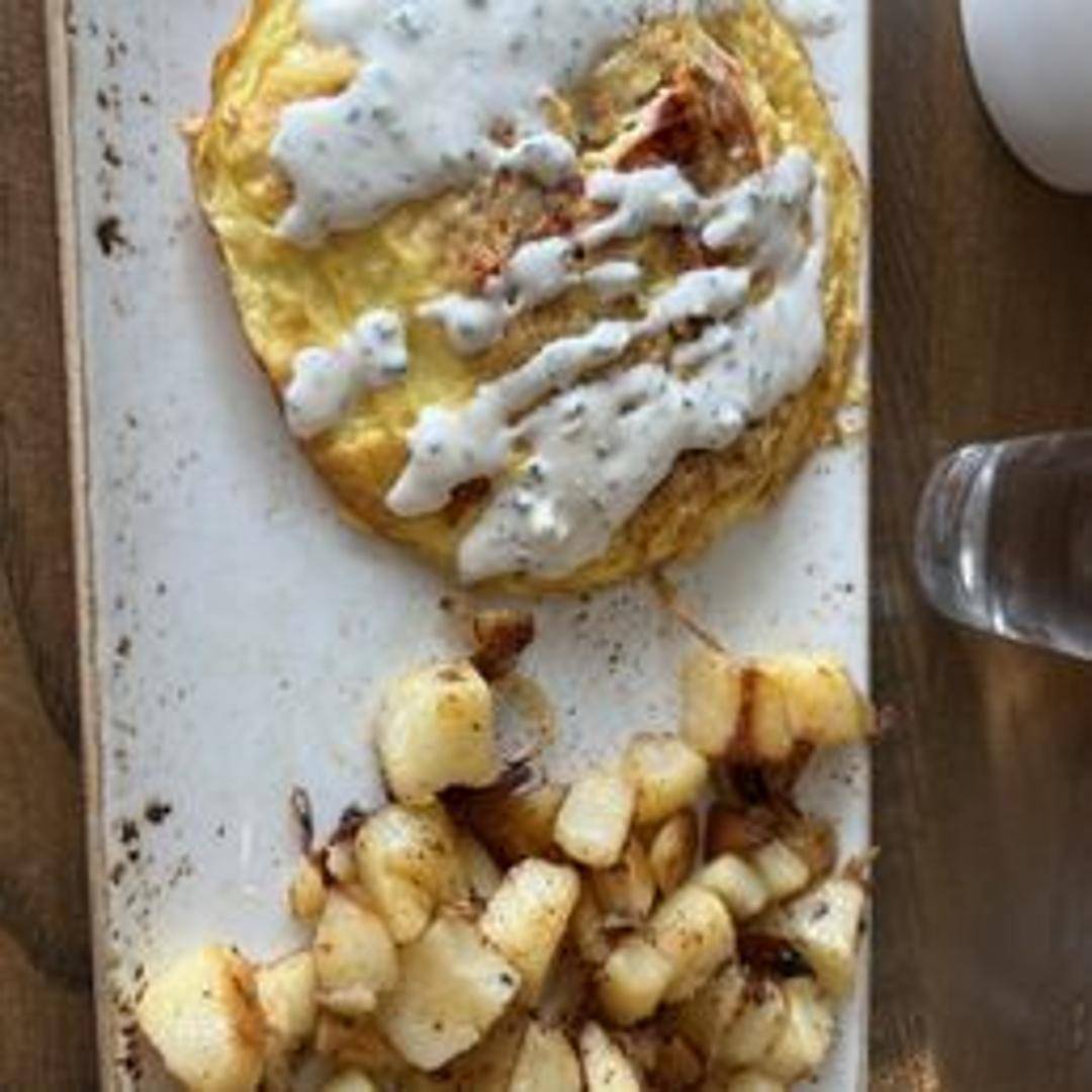 Everything seasoned avocado toast piled high with smoked salmon, whipped cream cheese, pickled red onions, and fresh dill. Served with lemon dressed arugula.