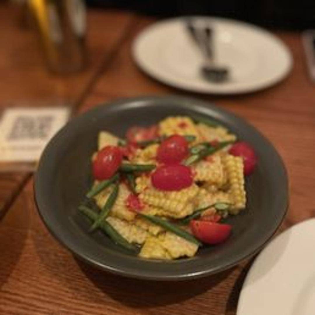 A vibrant and refreshing salad featuring sweet corn as the star, tossed with traditional Thai somtum flavors. Expect a delightful balance of sweet, sour, spicy, and savory notes, with ingredients like tomatoes, long beans, peanuts, fish sauce, lime, and chili.