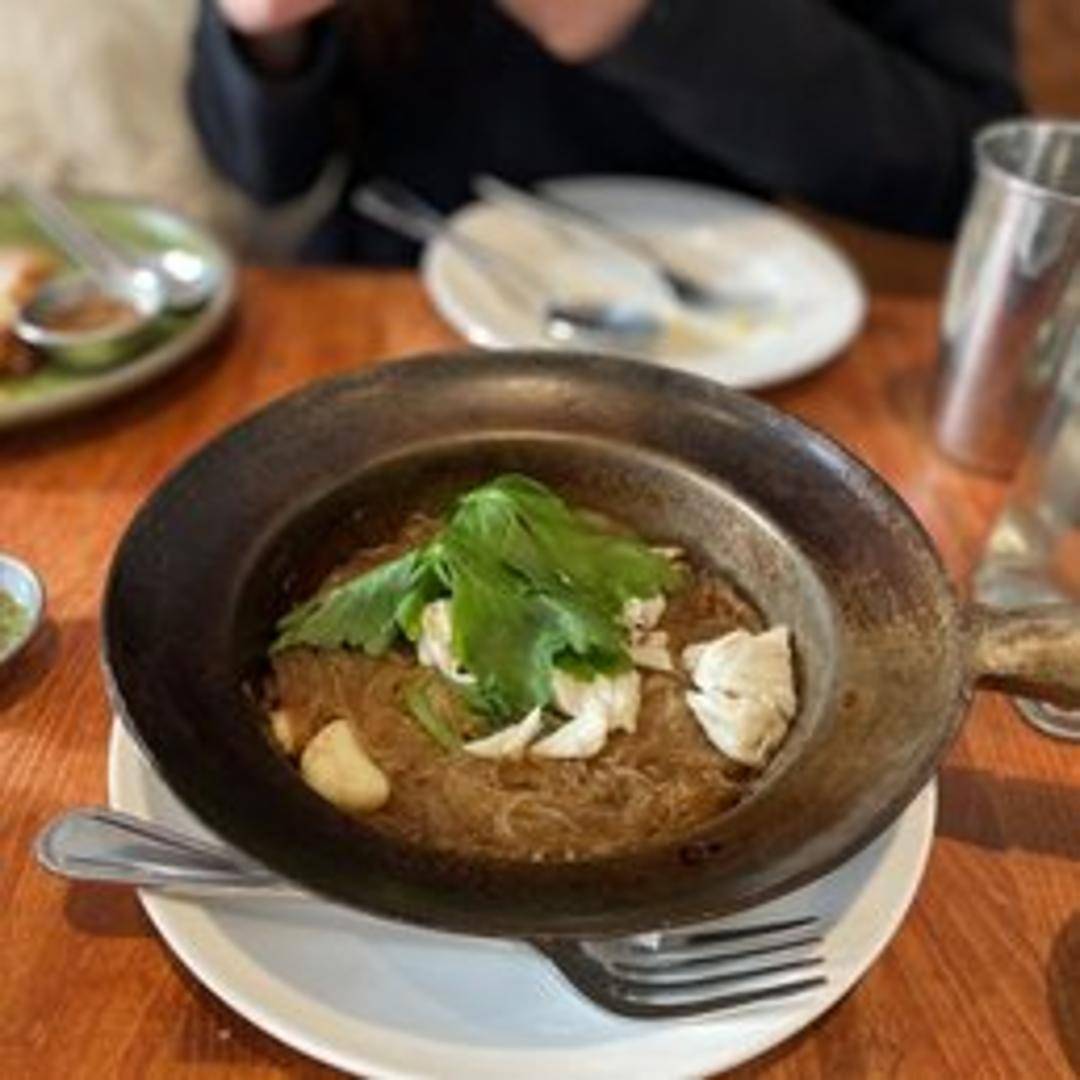 Glass noodles baked in a clay pot with jumbo lump crab meat, ginger, bacon, and white pepper. A flavorful and aromatic dish, the noodles absorb the rich flavors of the crab, ginger and bacon. The clay pot baking method adds a unique depth and texture.