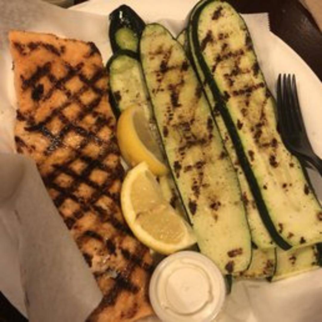 Tender zucchini slices, grilled and lightly seasoned with salt, pepper, and a drizzle of olive oil.
