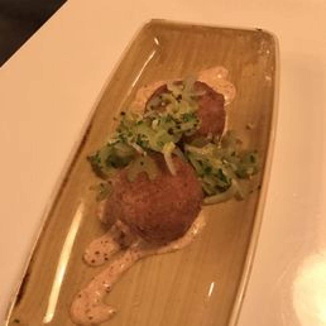Pan-seared or baked crab cakes, made with lump crab meat and a blend of seasonings. Served with a remoulade or aioli sauce. A classic seafood dish.