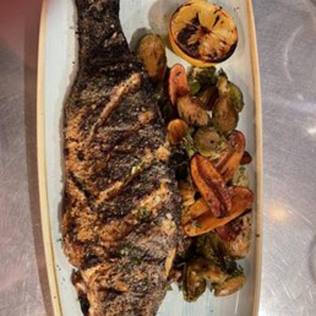 Fresh, seasonal fish cooked over an open wood fire, imparting a unique smoky flavor. The fish selection changes based on availability, ensuring the freshest and most flavorful options. Seasoned simply to highlight the natural taste.