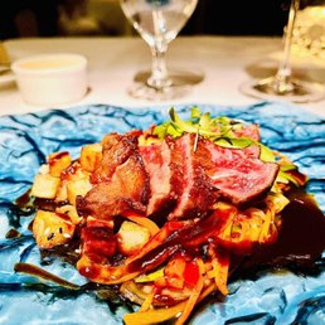 A classic cut of beef, grilled to the guest's preferred temperature. Known for its firm texture and robust, beefy flavor. Often accompanied by classic steakhouse sides and sauces.