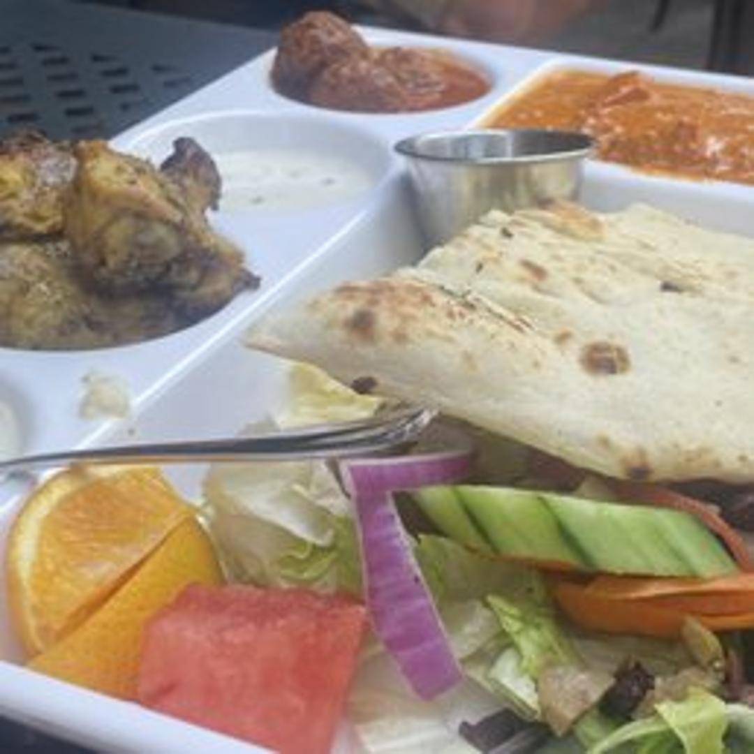 Tender pieces of tandoori chicken served on a bed of fresh greens with a flavorful dressing.