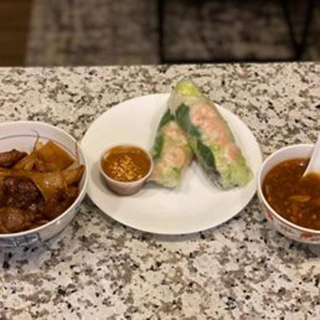A classic Cantonese stir-fry featuring wide, flat rice noodles expertly tossed with tender slices of beef, crisp bean sprouts, and fresh green onions in a rich, savory soy-based sauce. Known for its distinct 'wok hei' aroma and satisfying texture.