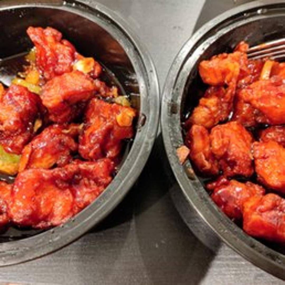 Crispy fried chicken pieces coated in a vibrant, zesty orange sauce that is both sweet and tangy, with a delightful citrus aroma. A popular Chinese-American classic offering a burst of refreshing flavor.