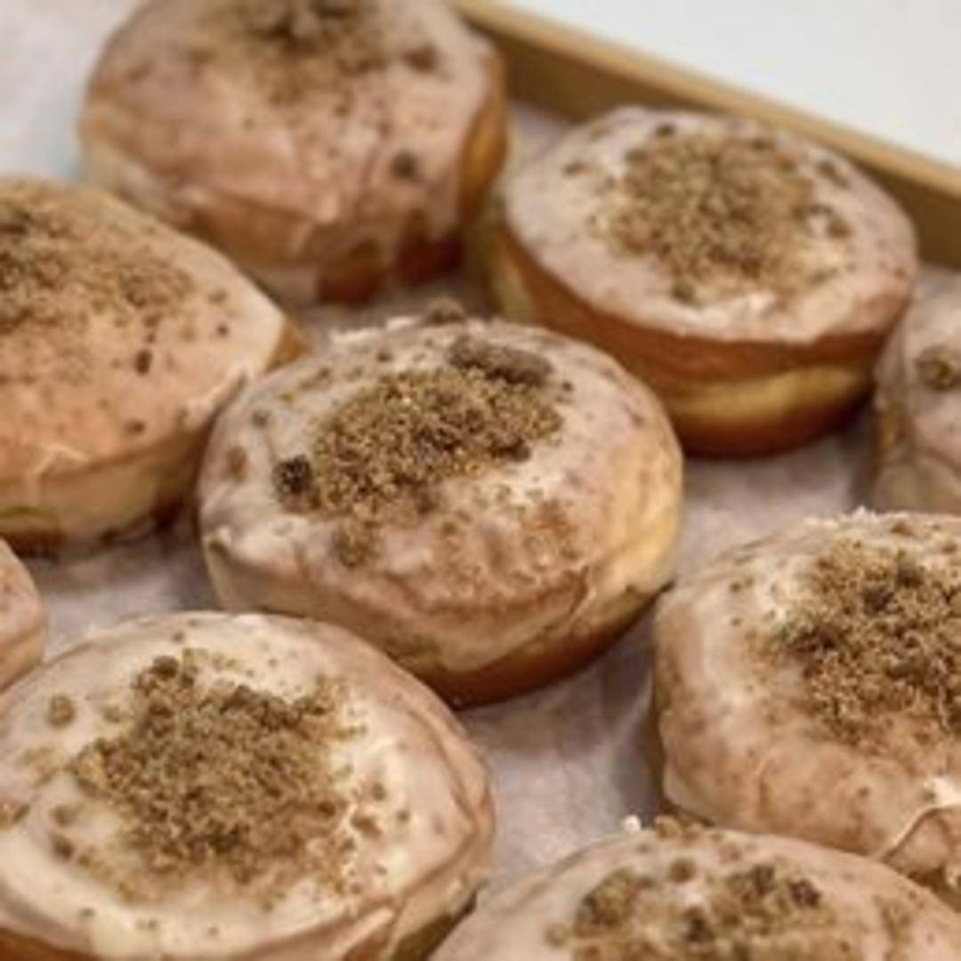 A classic donut infused with the warm and comforting flavors of apple and cinnamon. Expect a soft, doughy texture with a sweet apple filling and a dusting of cinnamon sugar on top.