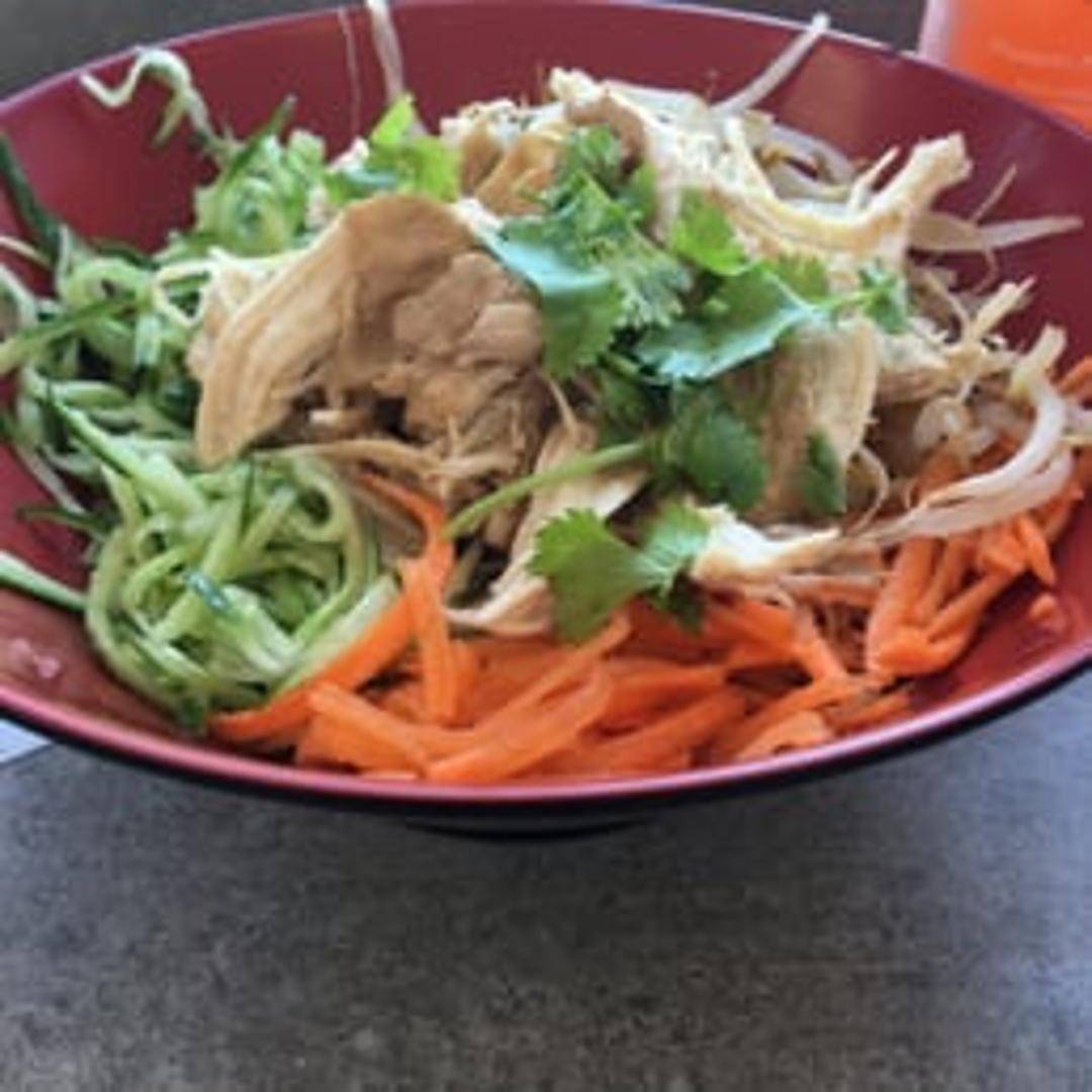 Cool and refreshing rice noodles tossed with tender shredded chicken, crisp vegetables, and a light, tangy dressing.