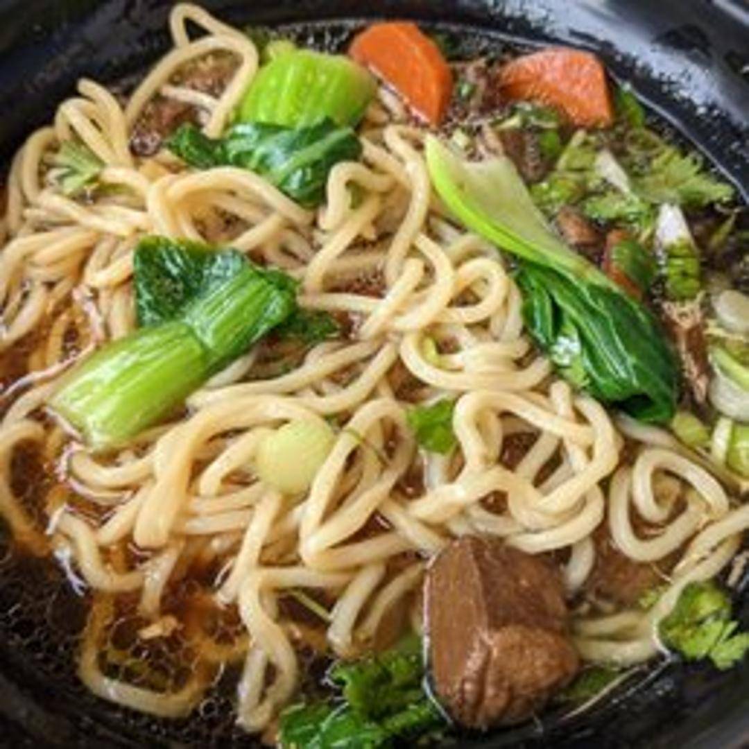 Savory broth simmered with tender spareribs, served over noodles and garnished with fresh herbs.