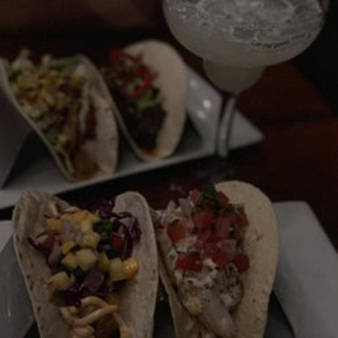 Grilled or blackened shrimp served in a soft or hard shell taco, often with shredded cabbage, pico de gallo, and a creamy sauce such as cilantro lime or chipotle aioli. Garnished with fresh cilantro and a lime wedge.
