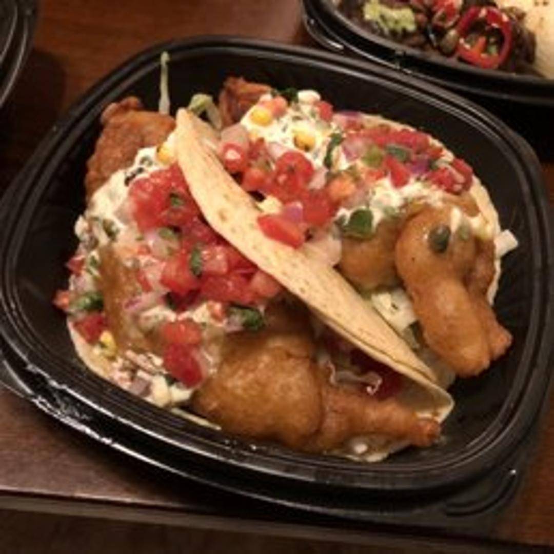 Two lightly battered or grilled white fish tacos, served with shredded cabbage, pico de gallo, and a creamy chipotle lime sauce in warm flour tortillas.