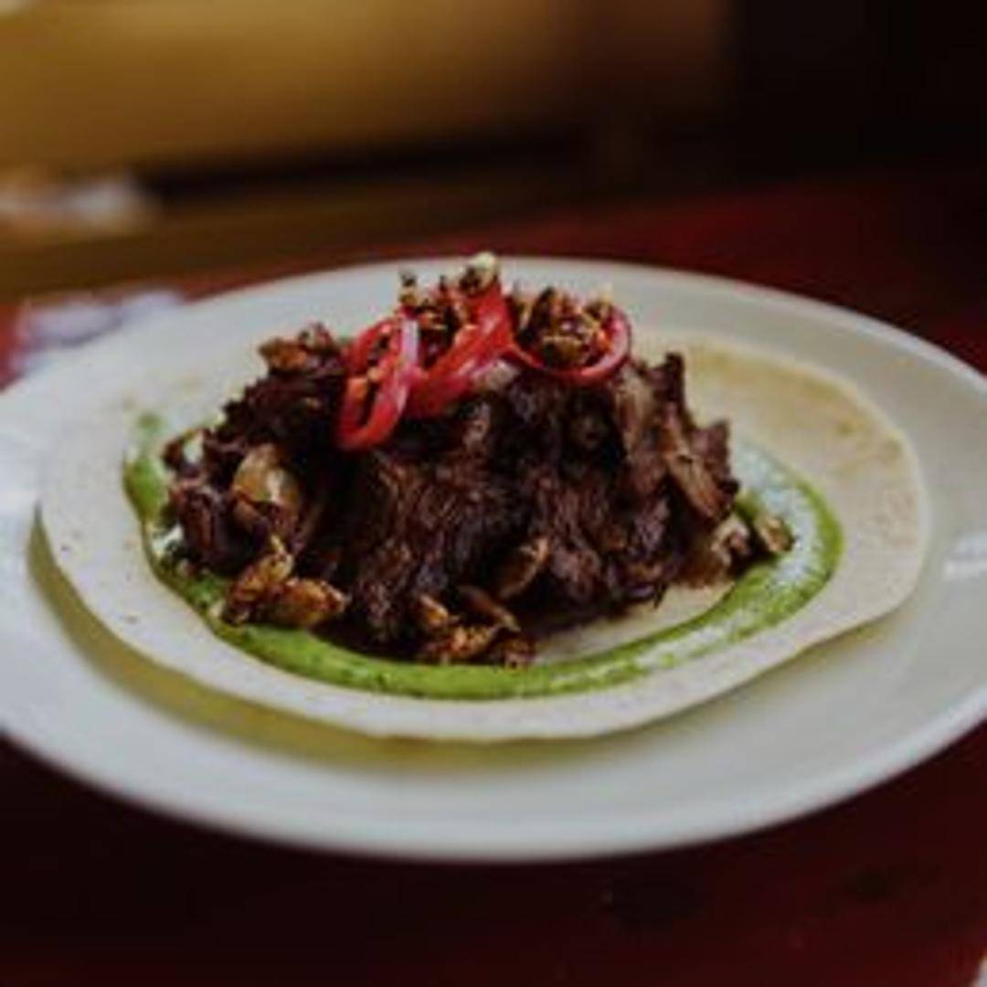 Grilled or seared steak, sliced and served in a warm tortilla. Often topped with onions, cilantro, and a salsa or sauce. May include other complementary ingredients.