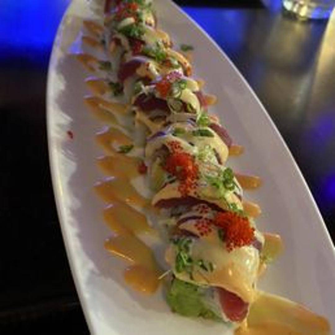 Tuna mixed with spicy mayonnaise and other seasonings, rolled in nori seaweed and sushi rice.