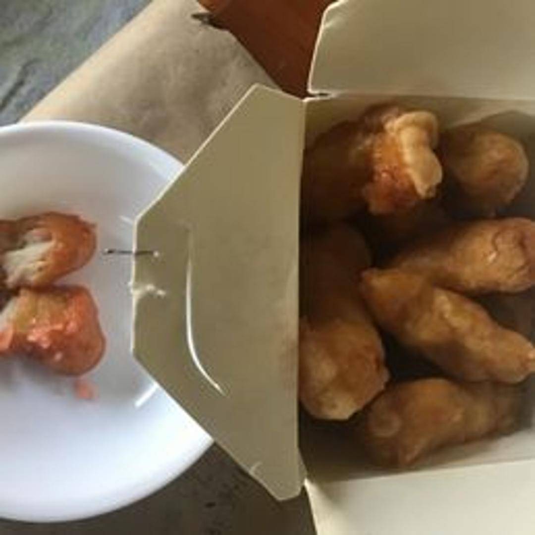 Tender, bite-sized pieces of chicken, lightly battered and deep-fried to a golden crisp. Coated in a vibrant, tangy sweet and sour sauce made with pineapple, bell peppers, and onions. Served hot over a bed of rice (rice may be separate or included).