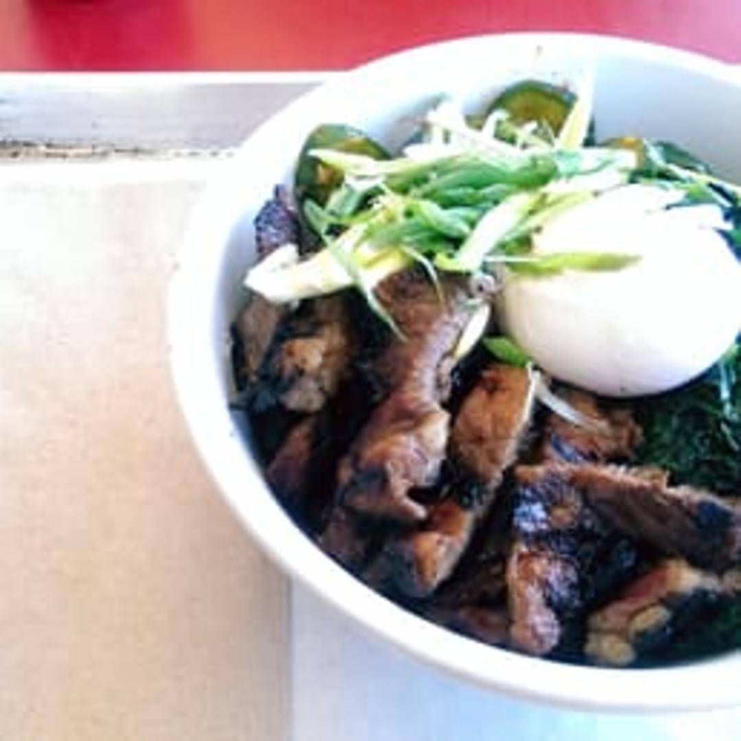 Slow-braised, tender short ribs served in a hearty bowl. Typically includes a base of grains (such as rice or quinoa) and a variety of fresh, seasonal vegetables. Topped with a flavorful sauce or gravy, providing a satisfying and savory meal.