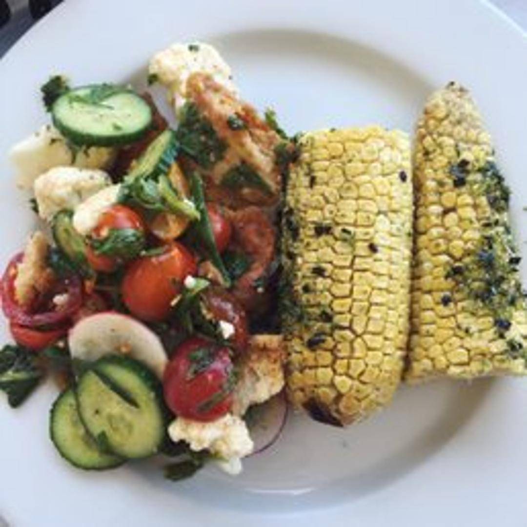 A vibrant Levantine salad featuring mixed greens, tomatoes, cucumbers, bell peppers, radishes, and crispy pita bread croutons. Tossed in a tangy sumac vinaigrette.