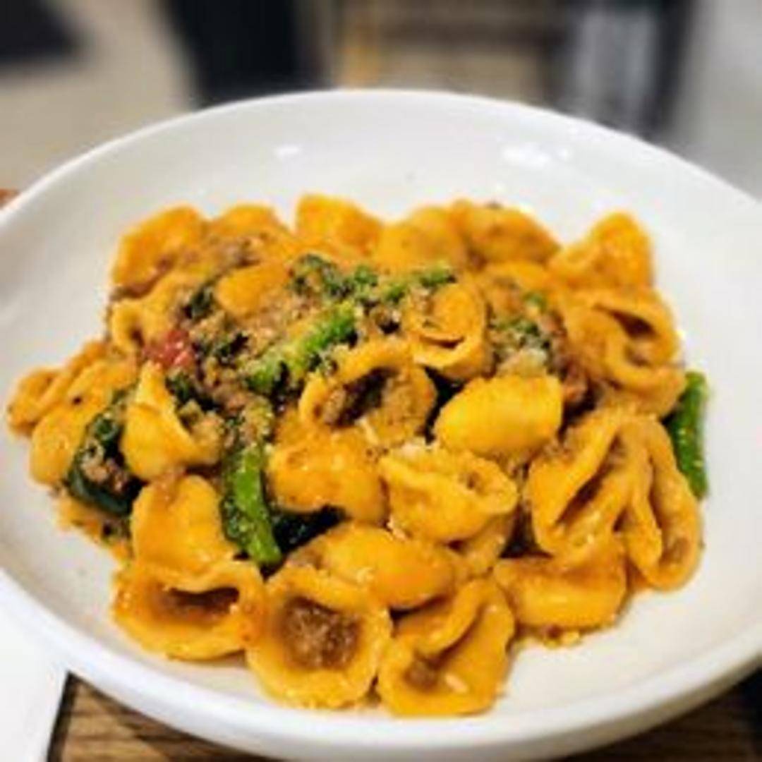Handmade Orecchiette pasta, crafted using traditional methods. These 'little ears' are perfect for capturing rich sauces and chunky vegetables. Made with semola flour and water.