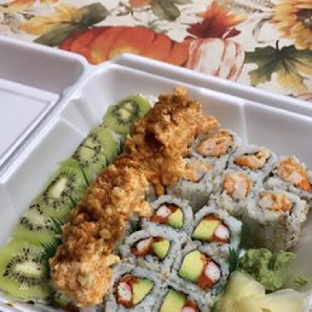 An exciting and often baked or torched signature sushi roll, designed to evoke the imagery of an erupting volcano. This inventive creation typically starts with a base roll, generously crowned with a mound of creamy, spicy baked seafood salad, commonly featuring chopped scallops, crab, or other fish blended with a rich spicy mayonnaise. It is then often garnished with masago and fresh scallions.