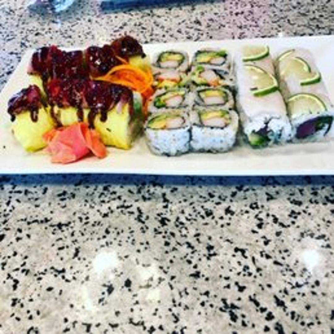 A specialty sushi roll with a combination of fresh ingredients. Expect a unique blend of seafood and vegetables rolled in sushi rice and nori seaweed, finished with signature sauces and toppings that complement the overall flavor profile. Specific ingredients may vary.