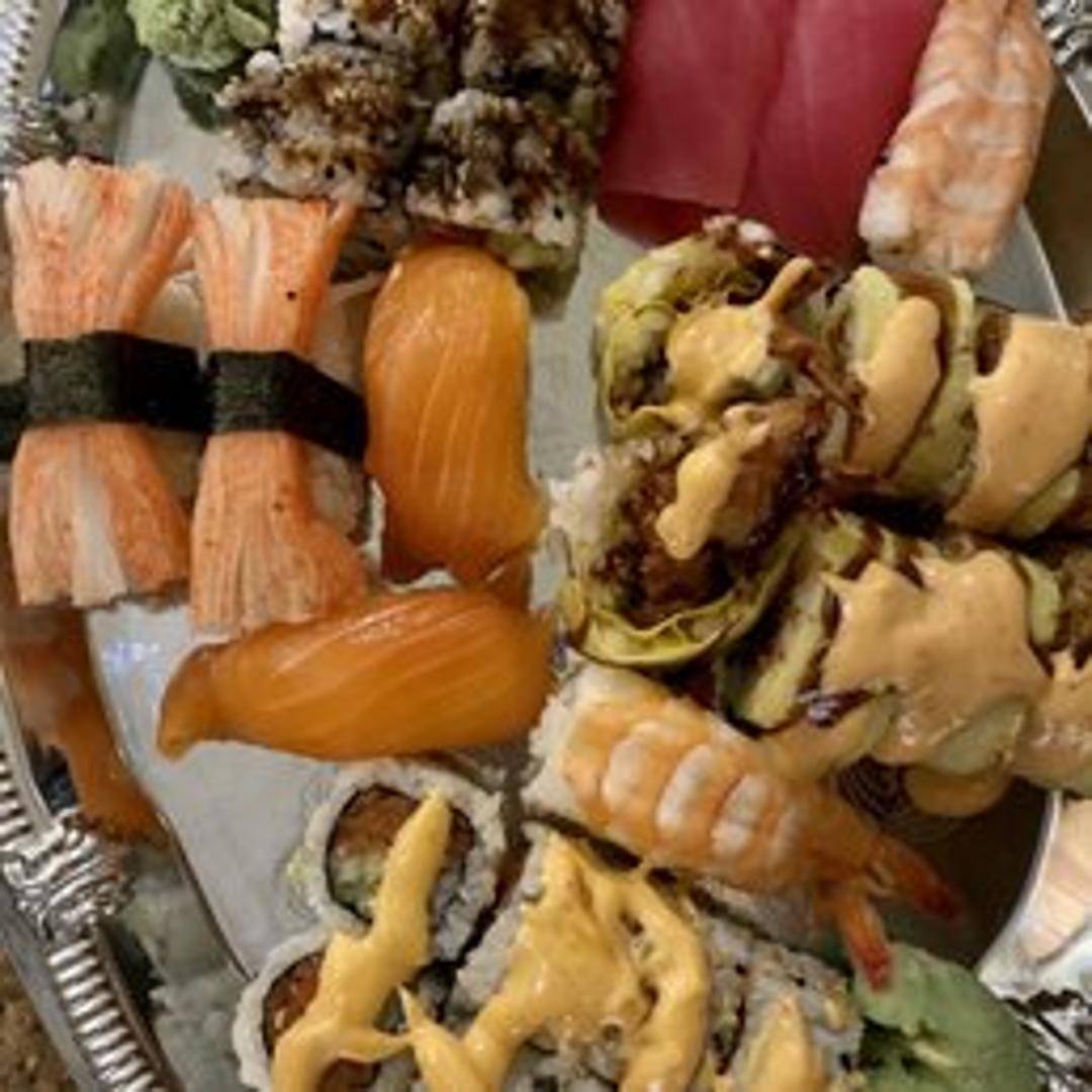 Soft shell crab tempura, cucumber, avocado, spicy mayo, and eel sauce rolled in sushi rice and nori seaweed.