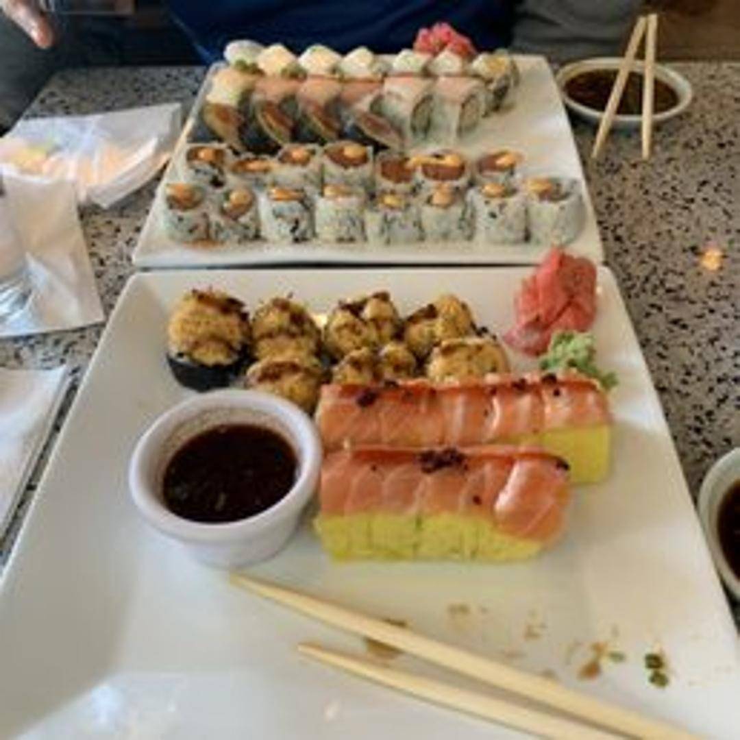 A fiery sushi roll featuring fresh salmon, spicy mayo, cucumber, and avocado. Topped with crunchy tempura flakes and a drizzle of sriracha for an extra kick.