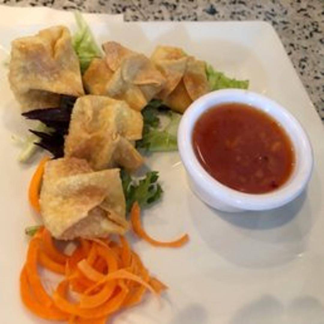 Crispy, golden-brown wontons filled with a creamy blend of imitation crab meat, cream cheese, and savory seasonings. Served with a sweet chili dipping sauce.
