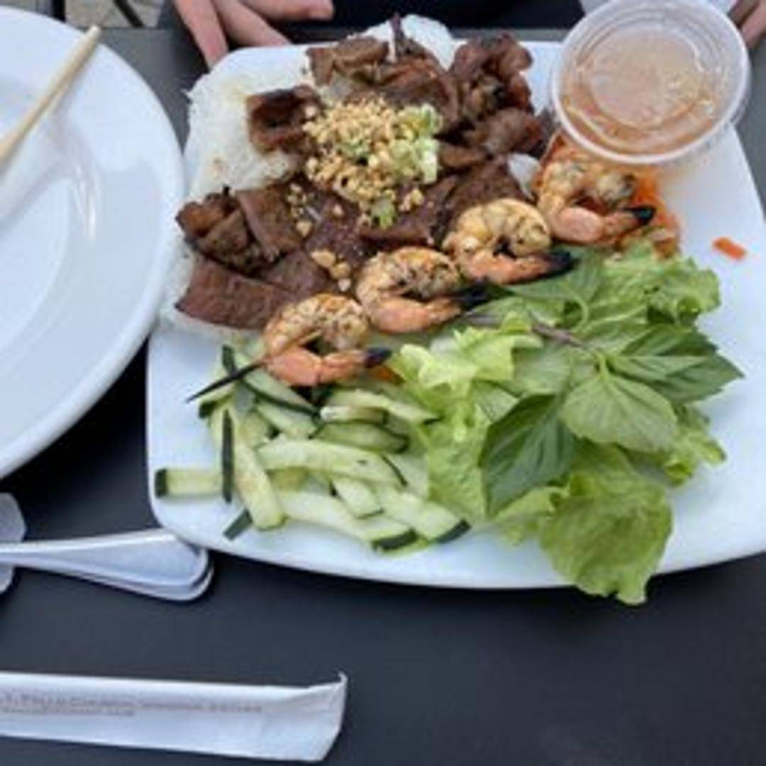 A golden, savory Vietnamese crepe made from a delicate rice flour batter infused with turmeric, pan-fried to a perfect crispness and generously filled with tender shrimp, pork, and fresh bean sprouts. Served with crisp lettuce leaves and an assortment of fresh herbs for wrapping, accompanied by our signature nuoc cham dipping sauce.