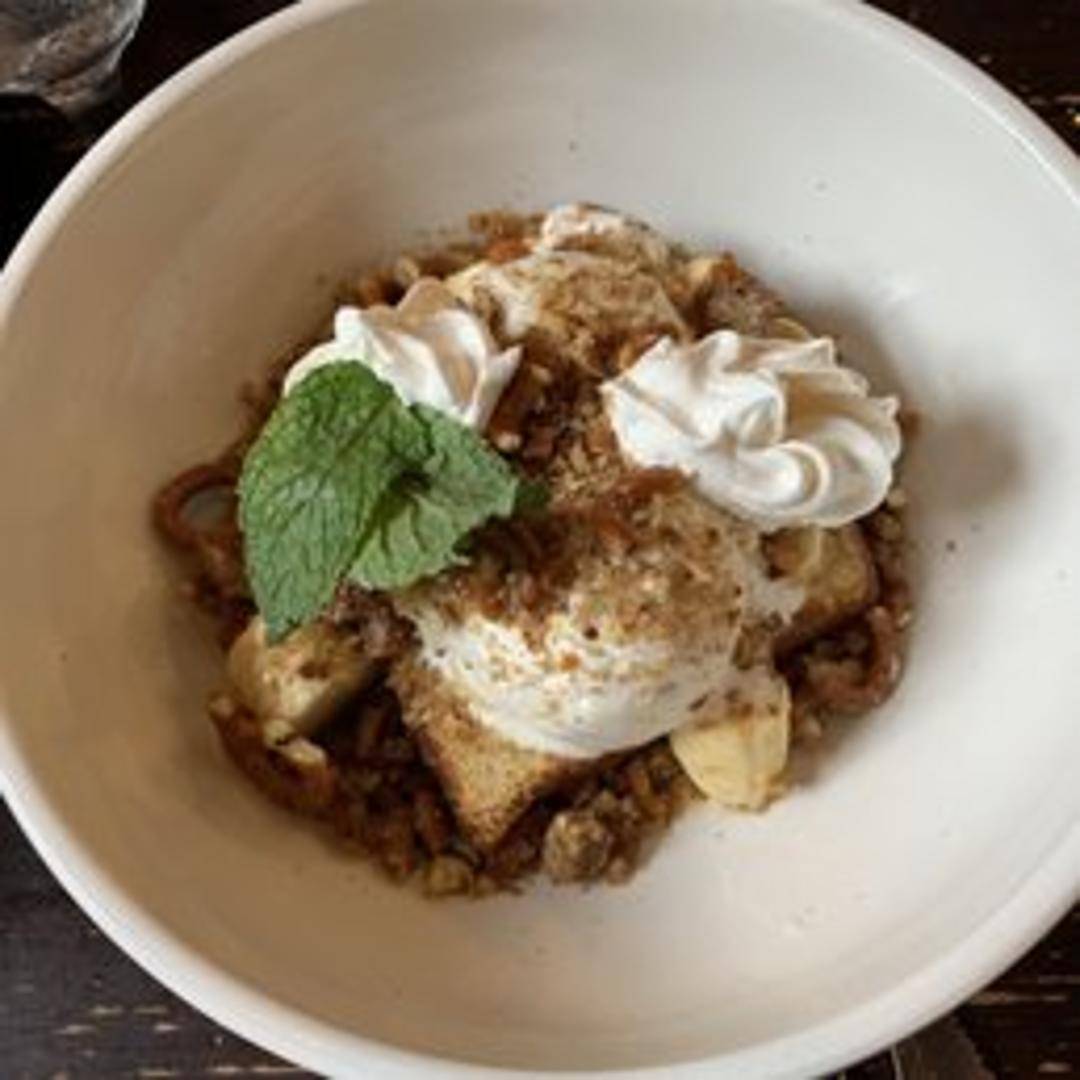 Sautéed bananas in a buttery brown sugar and rum sauce, served flambé over vanilla bean ice cream. Topped with chopped walnuts.
