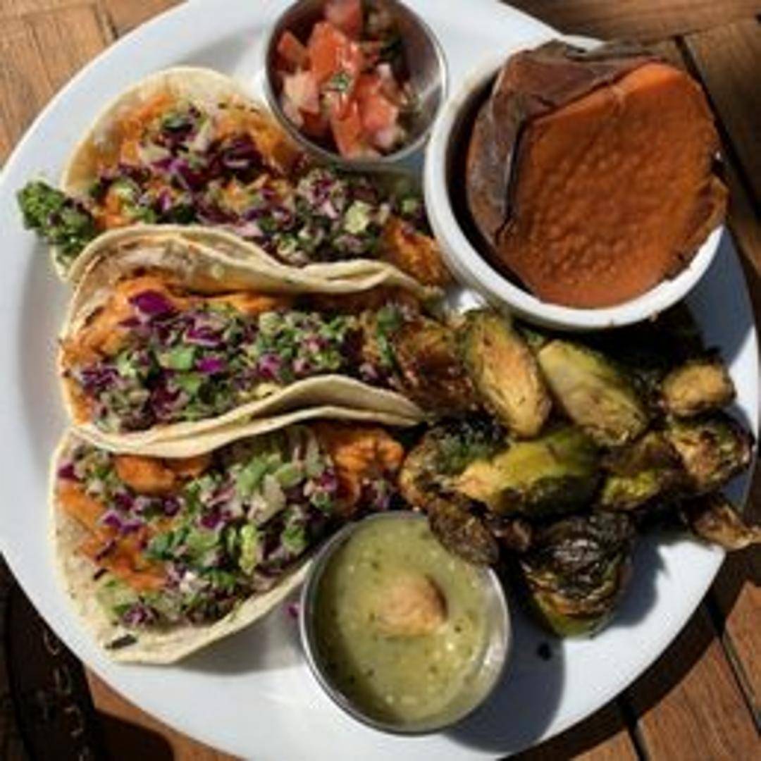 Grilled or pan-seared salmon served in warm tortillas, typically accompanied by fresh toppings such as shredded cabbage, pico de gallo, avocado, and a zesty sauce. Sold individually.
